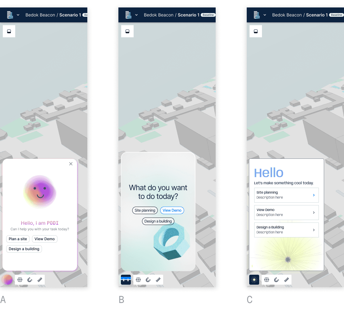 I explored 3 main look and feel for Podi, ranging from super friendly to more technical.