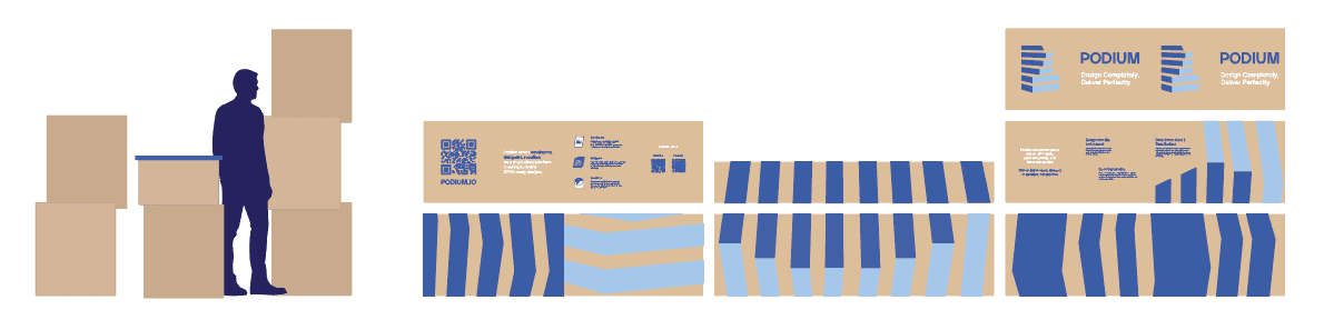 In a fast-paced startup environment, brand elements need to scale quickly and consistently across the multiple touchpoints. To enable this, I used the blue bars derived from the Podium symbol as a flexible secondary graphic system. This device allows the team to extend the brand efficiently across materials. while maintaining strong visual recognisability.