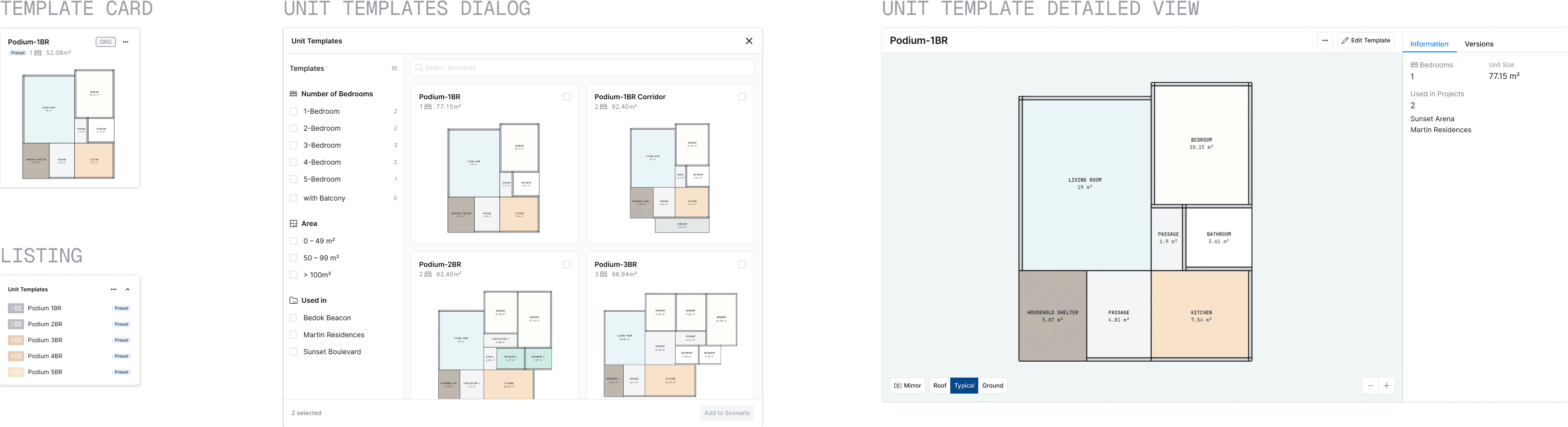 Architects tend to reuse unit templates across projects to maintain efficiency. The actual process of modifying and selecting units for the best outcome can be very tedious. Podium wants to bridge this gap by answering: