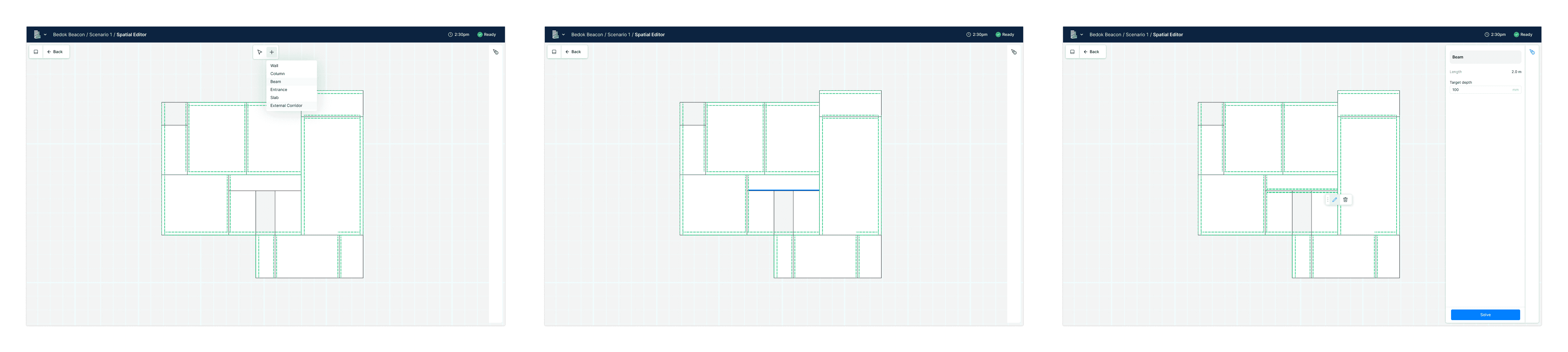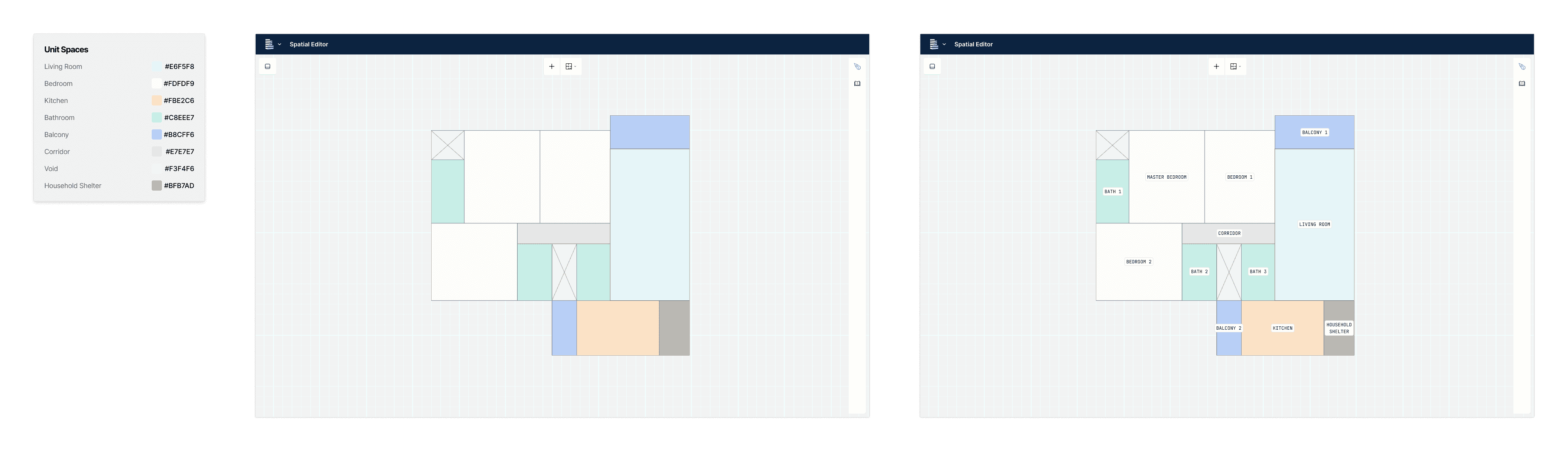 To enable users to create system-compatible templates while keeping modifications simple, we introduced the Spatial Editor – a dedicated environment where users can create and edit unit templates, with changes cascading across buildings, scenarios, and even up the hierarchy.